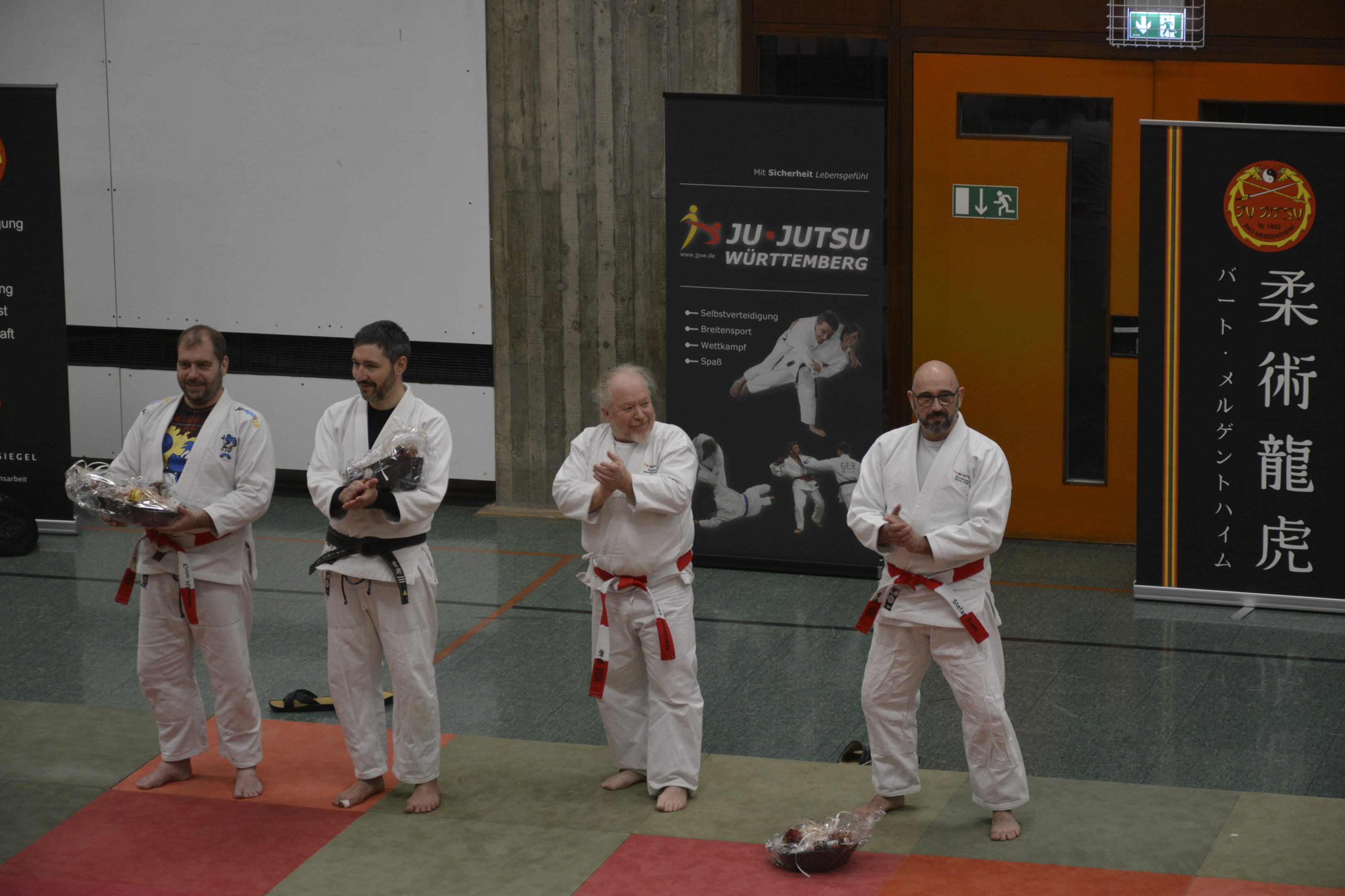 Andy Schleicher hat in Anerkennung der besonderen Verdienste um die Förderung des Ju Jitsu und des JJVW den 6. Dan Ju Jitsu verliehen bekommen. Die Verleihung erfolgte im Rahmen des Württemberg-Events in Ehingen, der größte Landeslehrgang in Württemberg. Die Laudatio...
