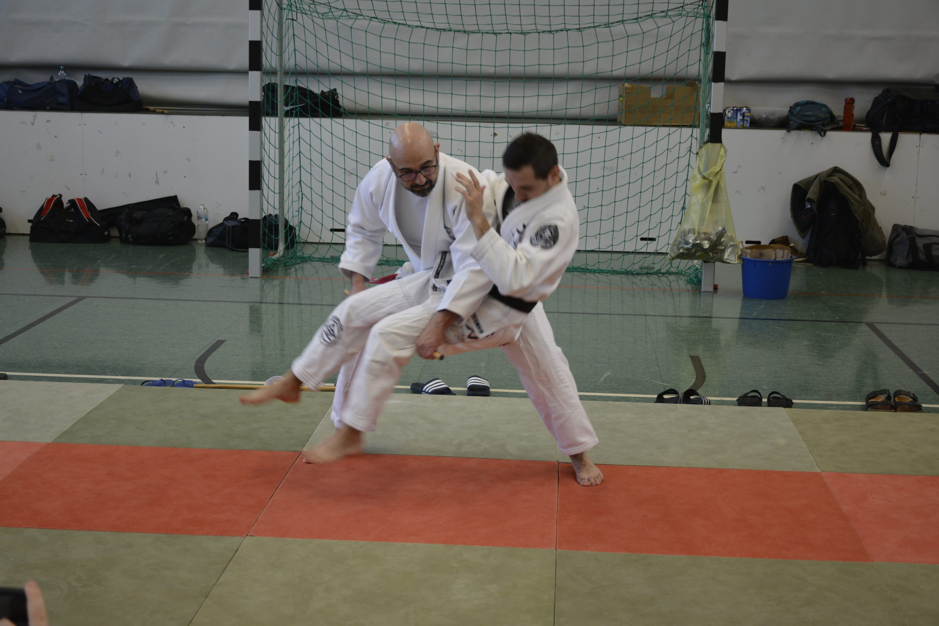 Wie jedes Jahr durften sich die zahlreichen Teilnehmer auf hochkarätige Referenten freuen: Matthias Scheffelmeier 3. Dan Ju Jutsu aus Schwäbisch Hall, Mitglied im Lehrteam sowie unseren Lehrwart und langjährigen Freund der Ju Jitsu-Abteilung, Stefan Stöhr 6. Dan Lehrwart Ju Jutsu im JJVW aus Steinheim. Außerdem ist Enno Häberlein, 6. Dan Referent Jugend des deutschen Ju Jutsu Verbandes aus Schwäbisch Hall bereits seit vielen Jahren beim Lehrgang für die Kinder und Jugendlichen dabei.